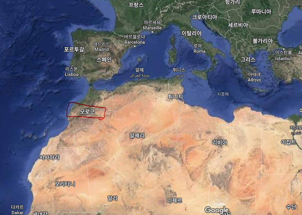 모로코는 아프리카 북부에 있는 입헌군주국입니다. 즉 내각이 있는 입헌 왕국입니다. 북쪽의 이베리아 반도의 스페인과 국경을 접하고 있으며 남쪽으로는 서사하라가 있습니다. 수도는 라바트입니다. 그런데 모로코는 우리가 상상하는 일반적이 아프리카 국가와는 조금 다릅니다. 프랑스와 스페인의 식민지로 있으면서 유럽의 문화가 이식된 국가입니다. 그리고 지리적 위치상 지중해를 접하고 있어 오래전 일찍 로마시대부터 관심을 받고 있는 지역이기도 합니다. 바다로 접근이 가능한 곳은 전략적 요충지이면서 또 관광객들이 많은 찾는 것이기도 합니다.