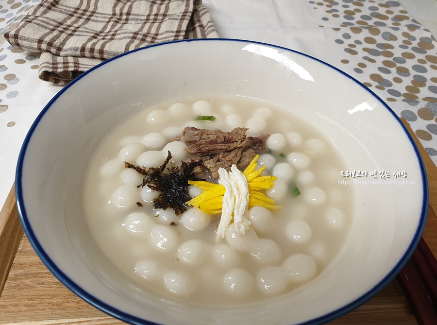 - 떡 형태: 손가락 모양의 조랭이떡.