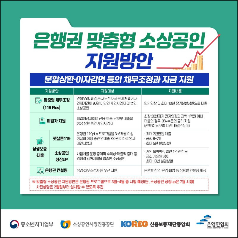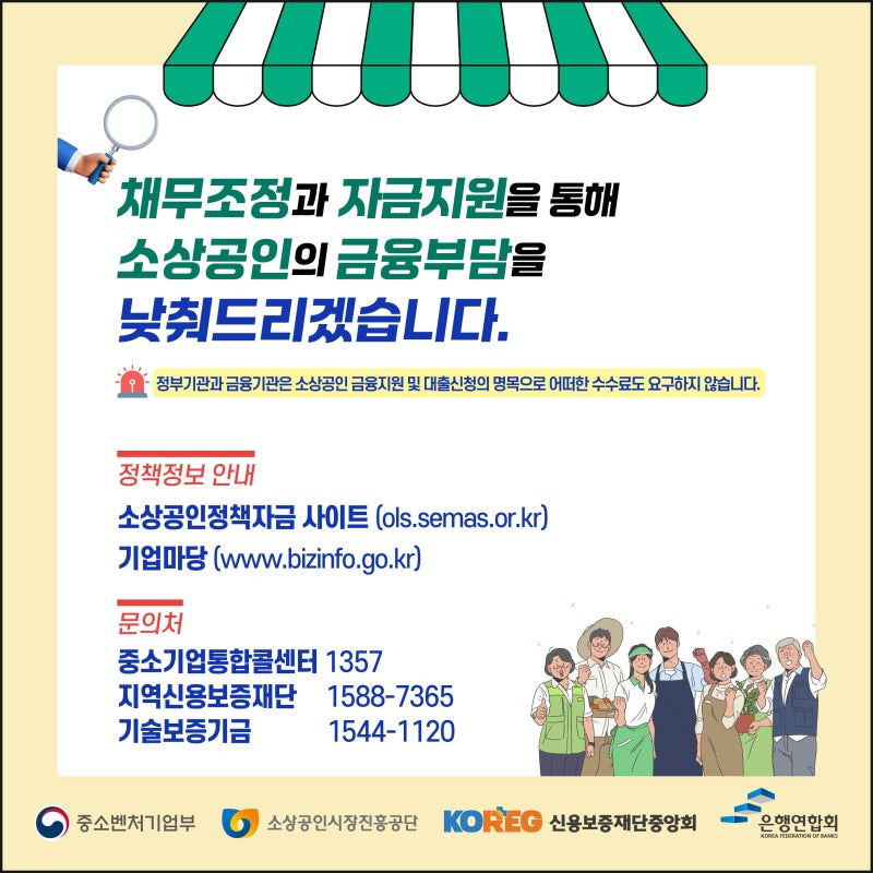 소상공인 금융지원 3종세트로 소상공인의 채무부담완화를 지원해드립니다.