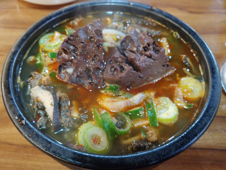 - 소의 피를 응고시켜 만든 선지가 들어간 국입니다.