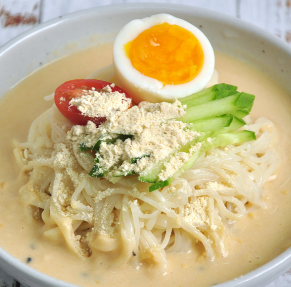 - 콩을 갈아 만든 진한 국물에 면을 넣어 먹는 여름 음식입니다.