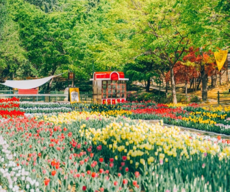 이월드에서는 100만 송이가 넘는 튤립이 놀이기구와 함께 어우러지며 동화 속 정원 같은 분위기를 자아냅니다. 밤이 되면 야간 조명과 함께하는 ‘튤립 불빛 정원’도 펼쳐져 또 다른 매력을 선사합니다. 바로 옆에 위치한 두류공원 역시 벚꽃과 다양한 봄꽃이 함께 피어나는 시민들의 쉼터로서, 도시 속 자연의 아름다움을 느낄 수 있는 장소입니다.