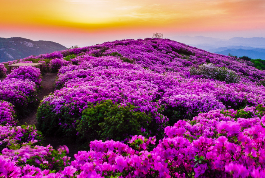 이곳의 철쭉은 단순히 아름답다는 것을 넘어, 경상도 지역의 산악 지형과 어우러져 장엄한 풍경을 선사하는 것이 특징입니다. 철쭉과 함께 황매산 정상에서 바라보는 일출은 또 다른 감동을 선사하니, 이른 아침 방문도 추천드립니다.
