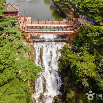 충주댐 건설로 수몰될 위기에 처한 문화재들을 이전·복원하여 조성한 단지로, 향교, 관아, 민가 등 43점의 문화재와 1,600여 점의 생활 유품이 전시되어 있습니다. 특히, 고려 시대에 건축된 한벽루와 청풍 석조여래입상 등 보물급 문화재를 직접 볼 수 있어 역사와 문화를 체험하기에 적합한 장소입니다. - 용추폭포 유리전망대