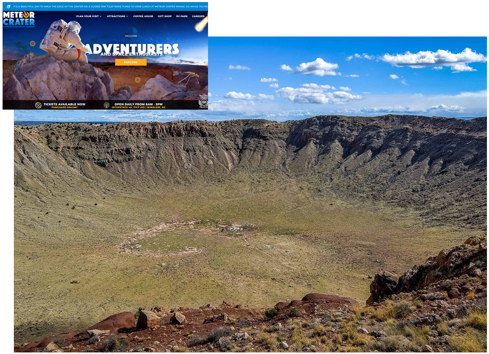 한편 우리나라에는 이제 단 하나의 운석충돌구를 발견했지만 미국은 워낙 넓은 나라라 상당히 많은 운석충돌구가 있다. 그 중에서 애리조나주에 있는 Meteor Crater (Canyon Diablo Meteorite 혹은 베링거 운석충돌구)가 유명하다. 이 운석충돌구(크레이터)는 직경은 1,186 m, 깊이가 170 m, 높이가 45 m이다. 이 정도로 한눈에 들어오는 충돌구가 사실은 충격의 느낌이 더 리얼하다. 언젠가 한번 방문할 수 있기를 기대해 본다. 이 운석충돌구는 약 5만 년 전에 형성되었으며 충격한 운석은 직경 50 m였을 것으로 추정되며 충격에너지는 10 메가톤(TNT)으로 추정한다.