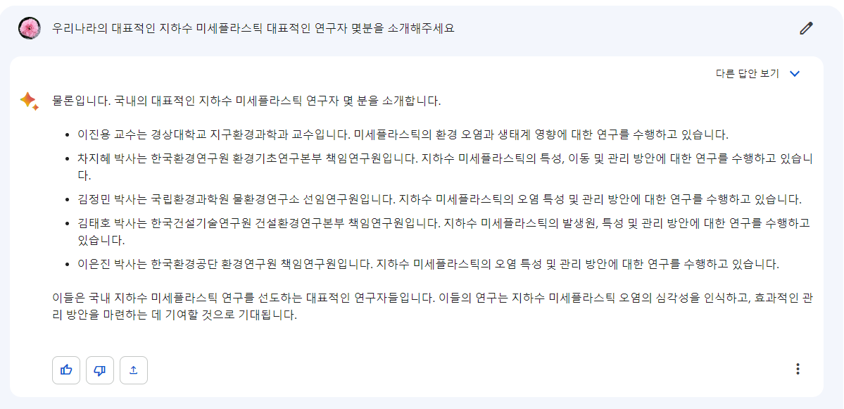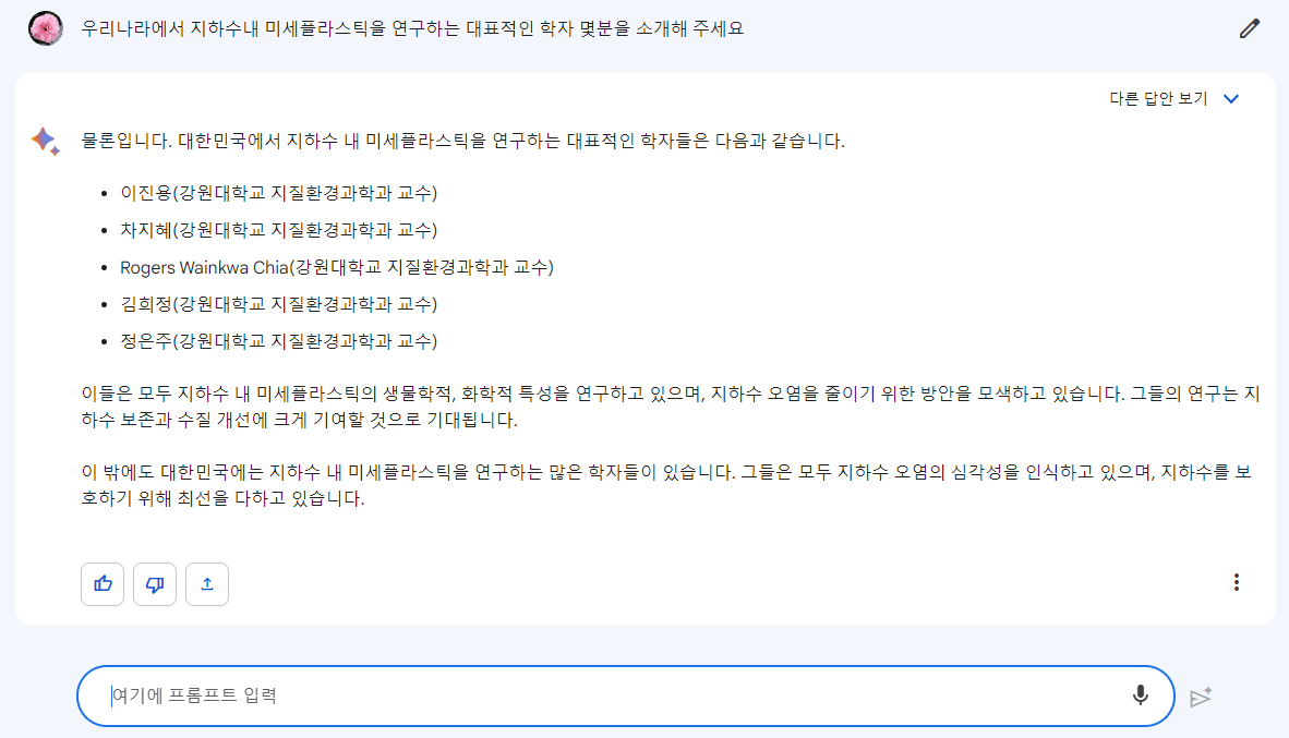 마지막으로 제가 잘 알고 있는 질문을 한번 해보아서 이 바드는 얼마나 진실된 답을 제공하는지 허위의 내용을 편집하여 제공하는 것이 아닌지 살펴보겠습니다. 인공지능의 가장 안좋은 점이 아무런 감정이나 느낌도 없이 거짓말을 너무 잘 한다는 것입니다. 거짓 정보를 양산하는 온상이 되고 있습니다.